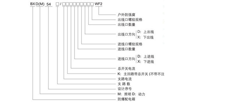 BXM(D)54系列照明(動力)防腐防爆配電箱型號及含義:
